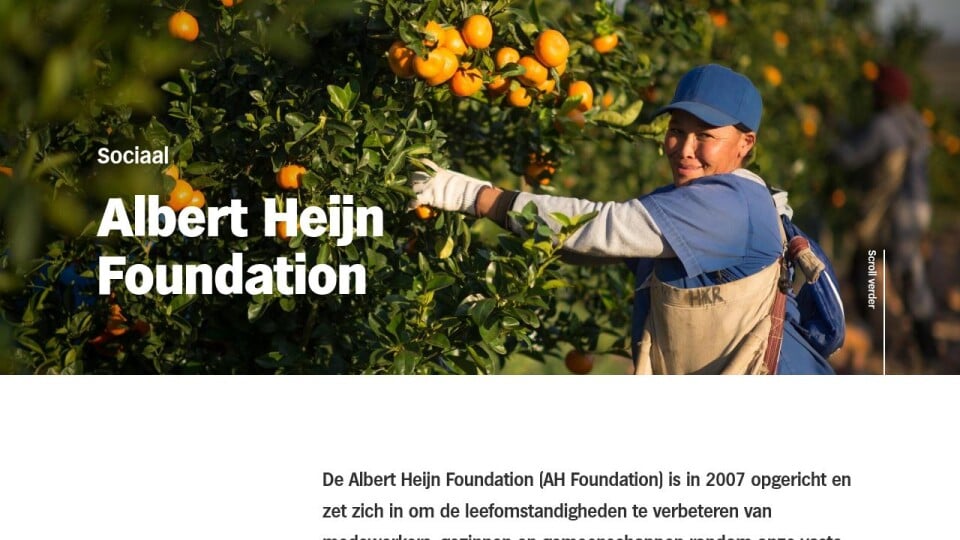 De Albert Heijn Foundation (AH Foundation) is in 2007 opgericht en zet zich in om de leefomstandigheden te verbeteren van medewerkers, gezinnen en gemeenschappen rondom onze vaste groente- en fruitleveranciers in Afrika en Zuid-Amerika. Samen investeren we in lokale projecten op zes impactgebieden: wonen, onderwijs, gezondheidszorg, persoonlijke ontwikkeling, milieu en mensenrechten.