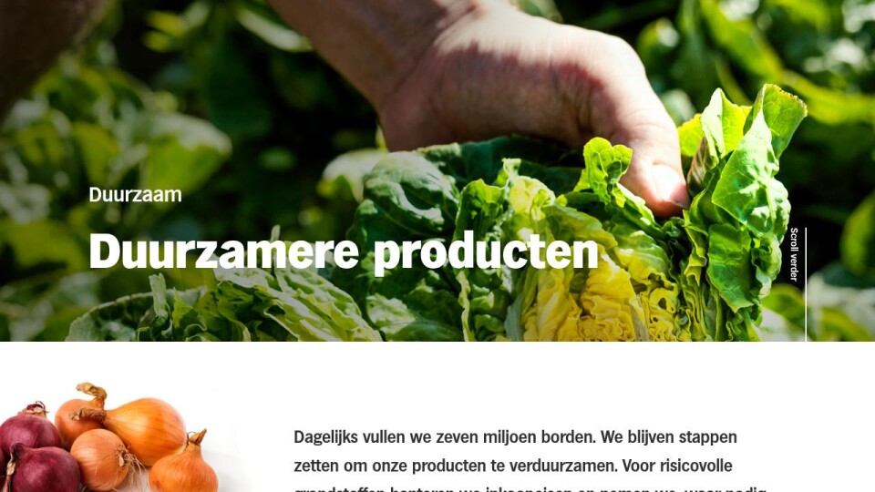 Dagelijks vullen we zeven miljoen borden. We blijven stappen zetten om onze producten te verduurzamen. Voor risicovolle grondstoffen hanteren we inkoopeisen en nemen we, waar nodig, aanvullende maatregelen. En met keurmerken helpen we klanten om duurzamere keuzes te maken. Ook breiden we ons biologische assortiment steeds verder uit en maken we deze producten toegankelijker voor iedereen.