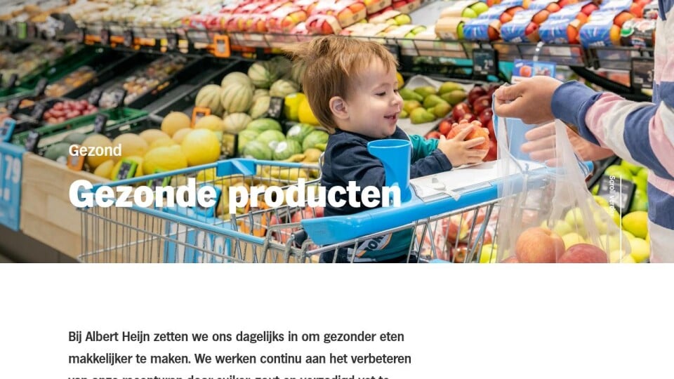 Bij Albert Heijn zetten we ons dagelijks in om gezonder eten makkelijker te maken. We werken continu aan het verbeteren van onze recepturen door suiker, zout en verzadigd vet te verlagen en juist meer vezels en groenten toe te voegen. Daarnaast voegen we steeds meer nieuwe gezondere producten toe aan ons assortiment.