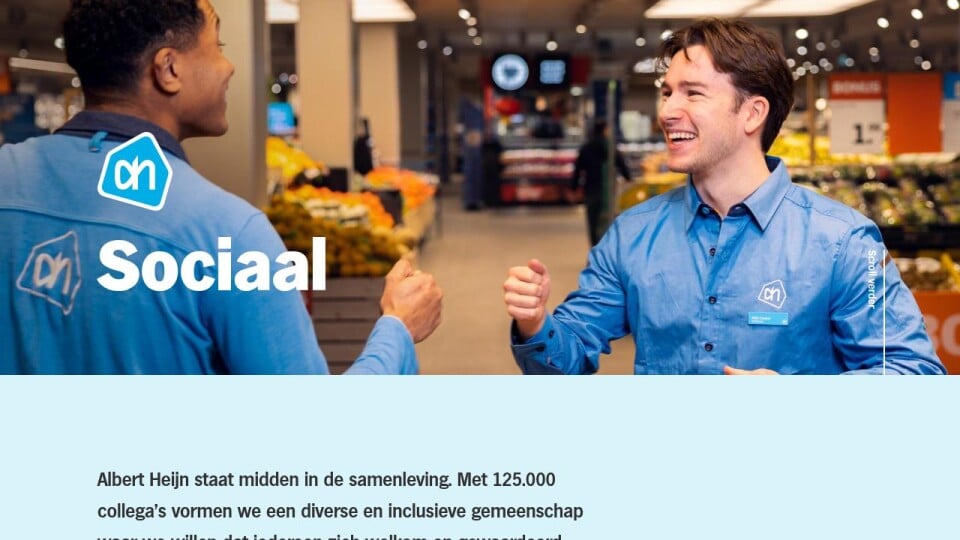 Albert Heijn staat midden in de samenleving. Met 125.000 collega’s vormen we een diverse en inclusieve gemeenschap waar we willen dat iedereen zich welkom en gewaardeerd voelt. We bieden werk aan mensen met verschillende achtergronden, creëren kansen voor groei en ontwikkeling en investeren in een werkomgeving waarin iedereen mee kan doen. Maar onze impact gaat verder dan onze eigen werkvloer.